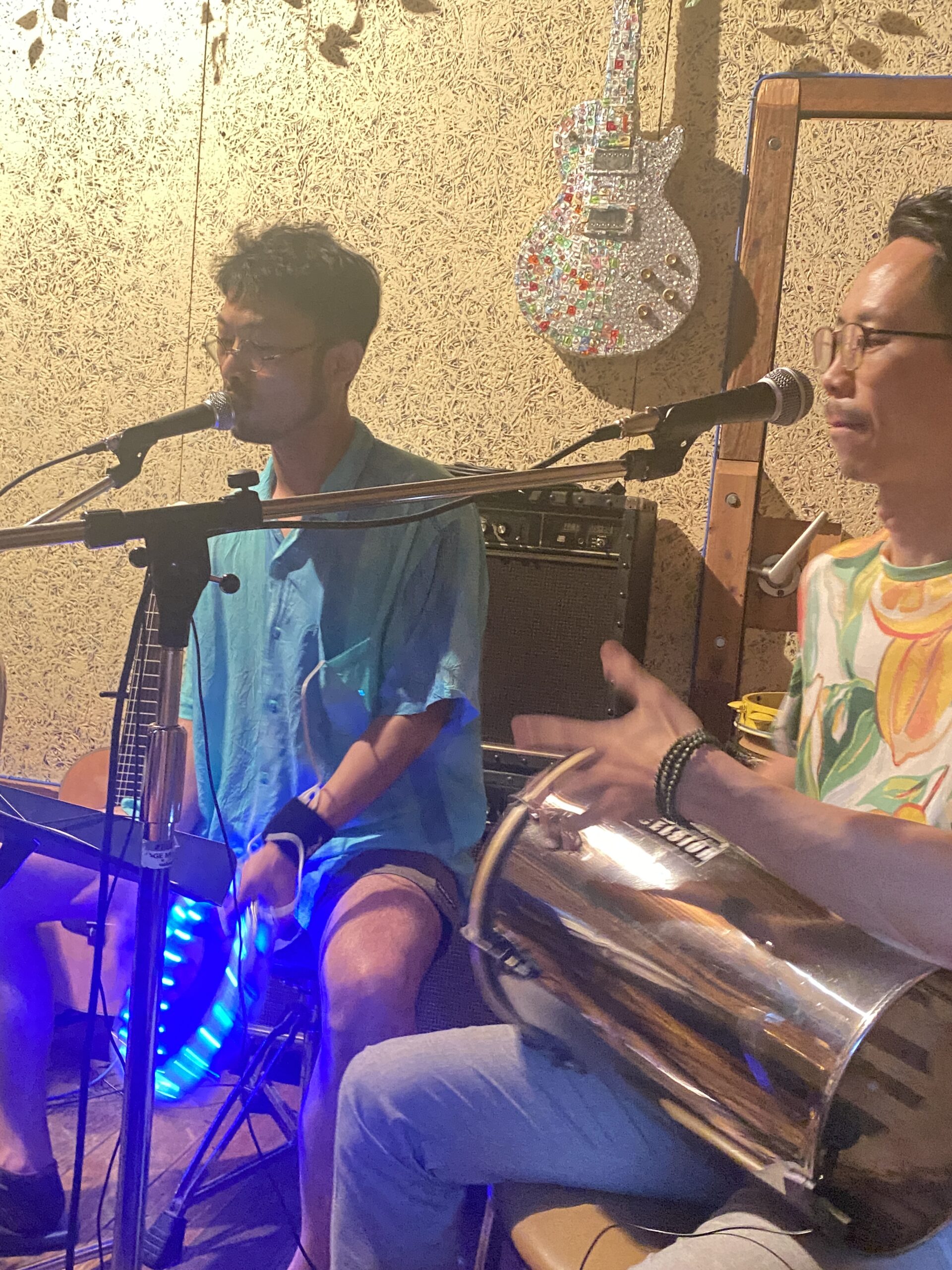 じゅんぺー そうね。「だれがプレーヤーで、だれが観客か」みたいなのが明確じゃなくて、一緒に歌いたくなったら歌ったらいいし、楽器を持ってきて、べつにいつでも参加したらいい、っていう、お客さんと演者との関係性が曖昧なのがとくに好き。かかわってもいいし、かかわらんくてもいいし、まあ自由にどうぞ、っていう感じやね。